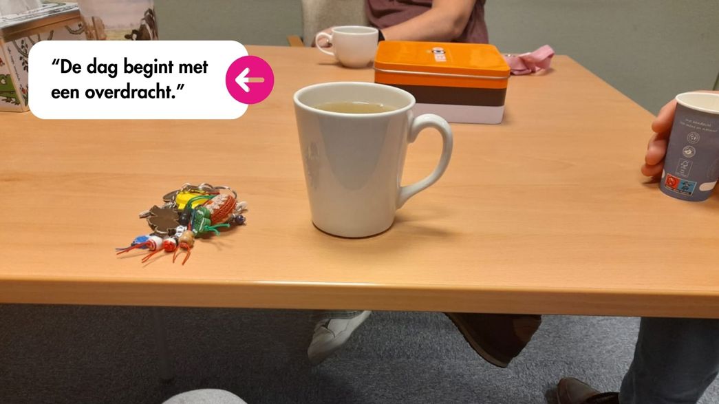 Na de lunch (en opnieuw kolven) volgt samen met een collega een intake van een nieuwe patiënt. Het gaat om iemand met een schizoaffectieve stoornis en een zorgmachtiging, waarbij Anne en haar team de zorg overnemen na een verhuizing. Later op de middag staan er nog een paar belafspraken gepland.